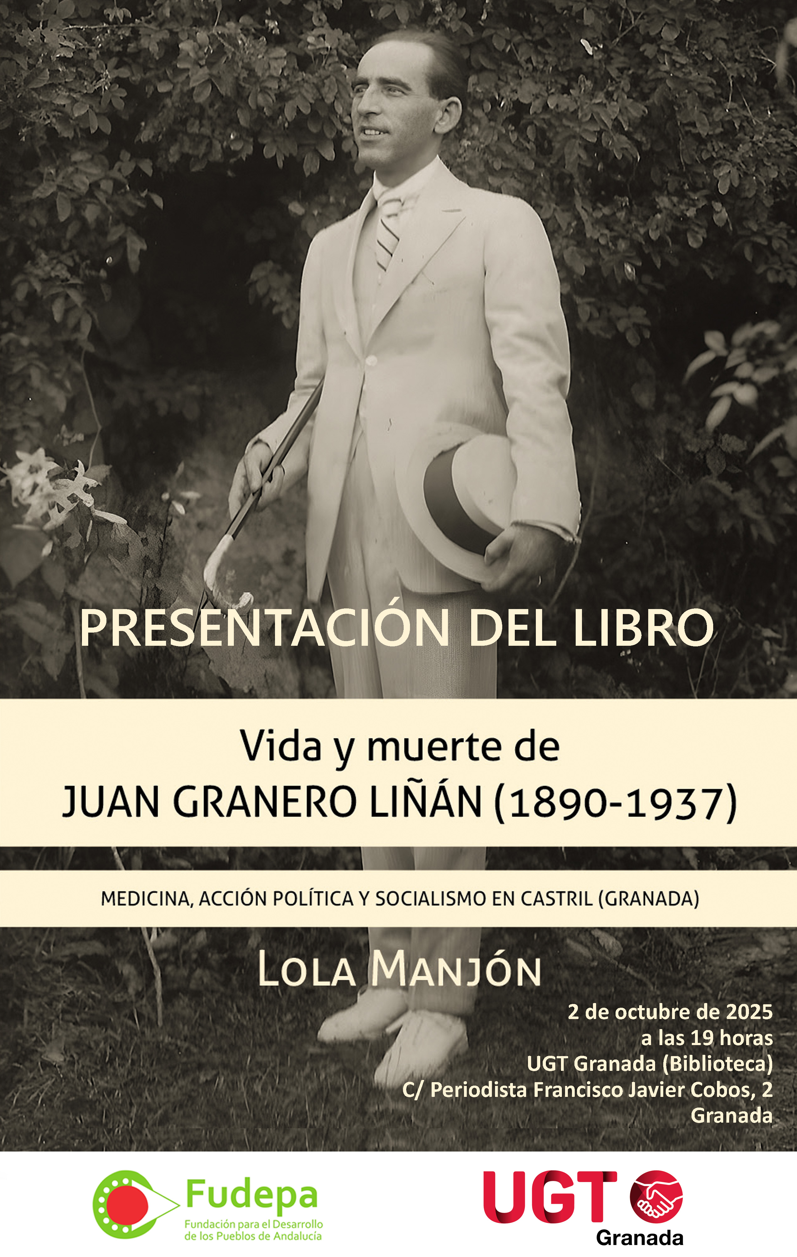 La Biblioteca de UGT Granada acogió el pasado 2 de octubre la presentación del libro Vida y muerte de Juan Granero Liñán (1890-1937). Medicina, acción política y socialismo en Castril (Granada), escrito por la investigadora Lola Manjón y editado por FUDEPA con la financiación de UGT Granada.